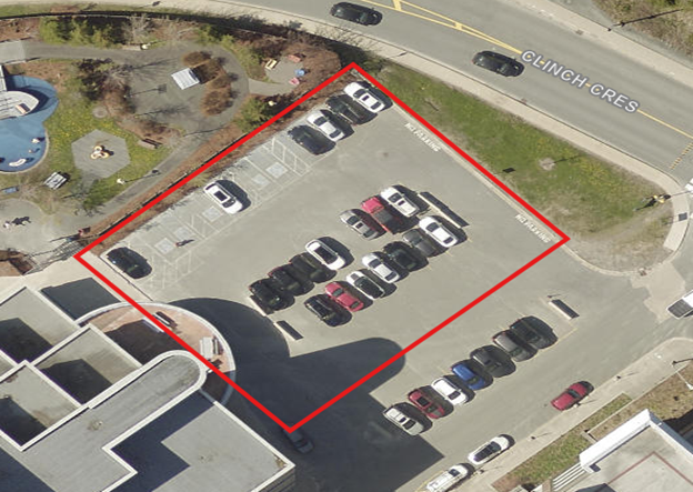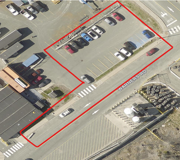 - the parking lot closest to the Mental Health and Addictions Centre, and the parking stalls, on Warner’s Road.