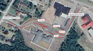 - Vehicular traffic on Little Bay Road must take the first right to enter the hospital parking lot. This will become a one way only entry point.